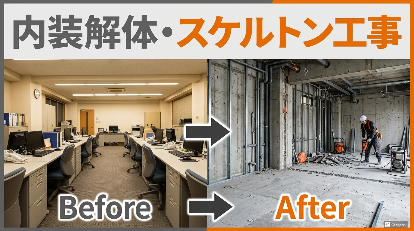 店舗やオフィスの移転やリニューアル、閉店に伴い必要となる「内装解体」。しかし、「スケルトン工事」や「原状回復」といった種類があり、その流れや費用について不安を抱く方も多いのではないでしょうか。